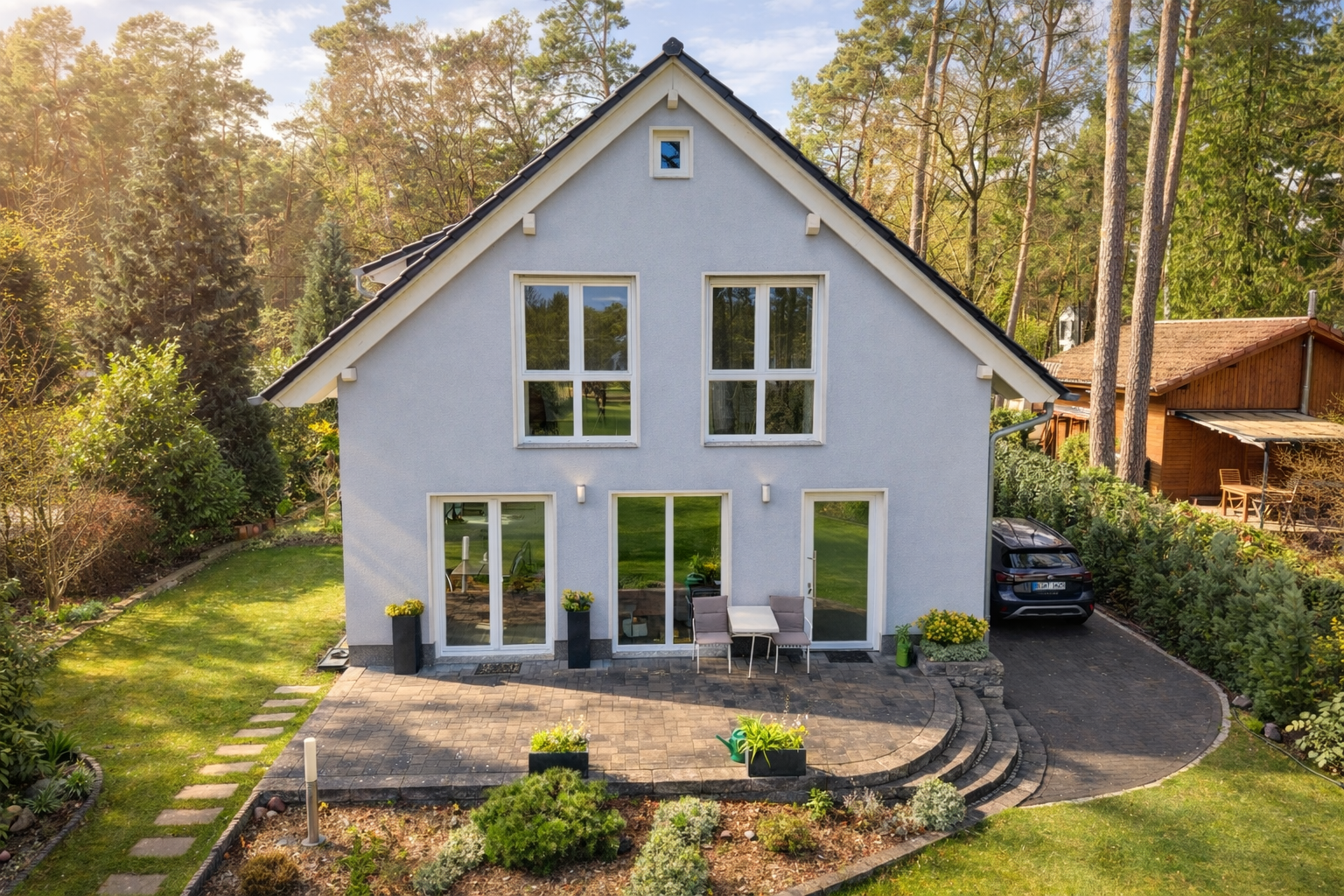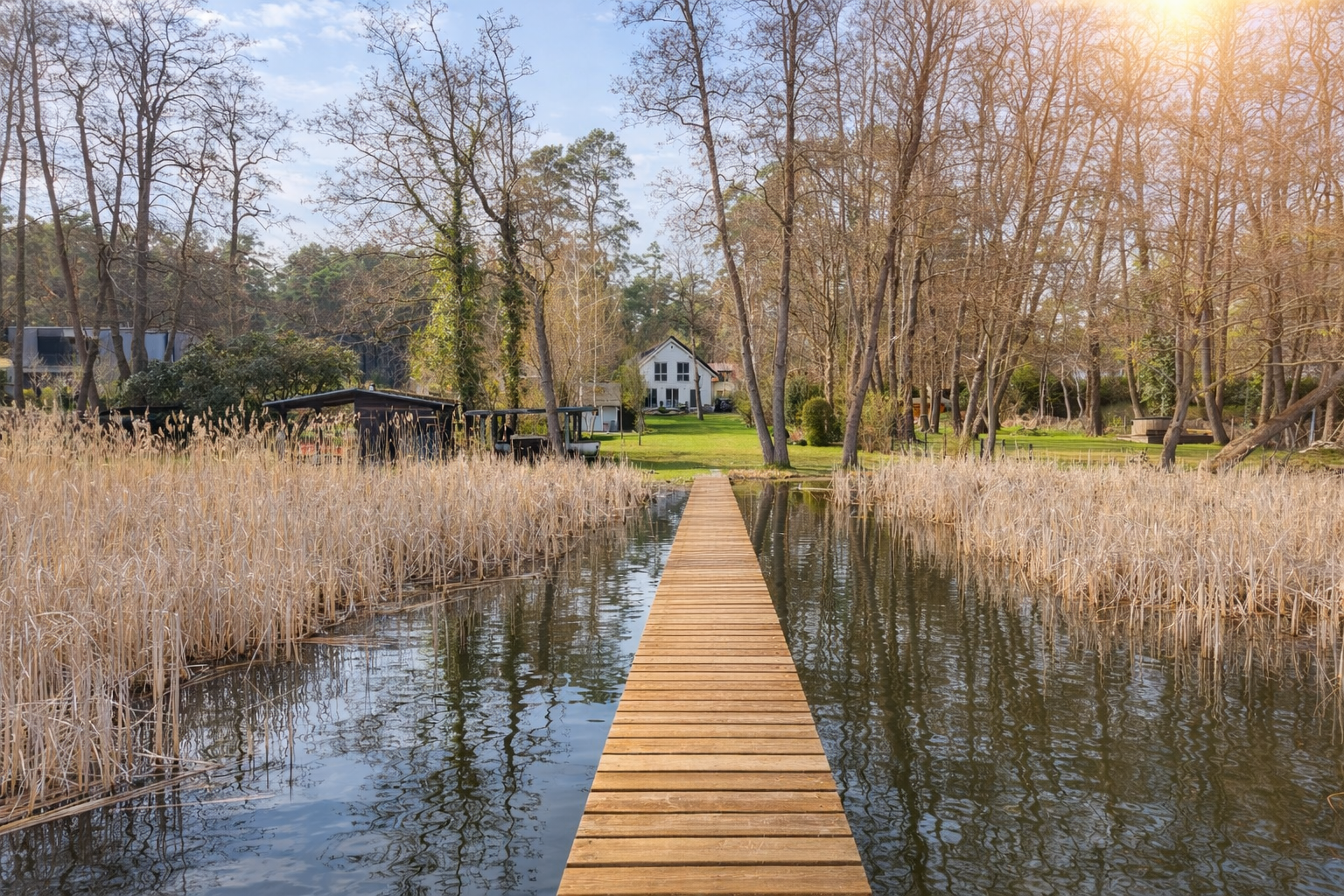 Dieses exklusive Refugium in Wandlitz eröffnet Ihnen eine Welt jenseits des Alltäglichen: Das sanfte Spiel des Lichts auf dem Wasser, die Stille der Natur und das Gefühl, angekommen zu sein. Ihr privater Seezugang mit eigener Steganlage macht jeden Moment zu einem Erlebnis – ob beim ersten Sprung in den klaren See am Morgen oder bei einem Glas Wein im goldenen Abendlicht.