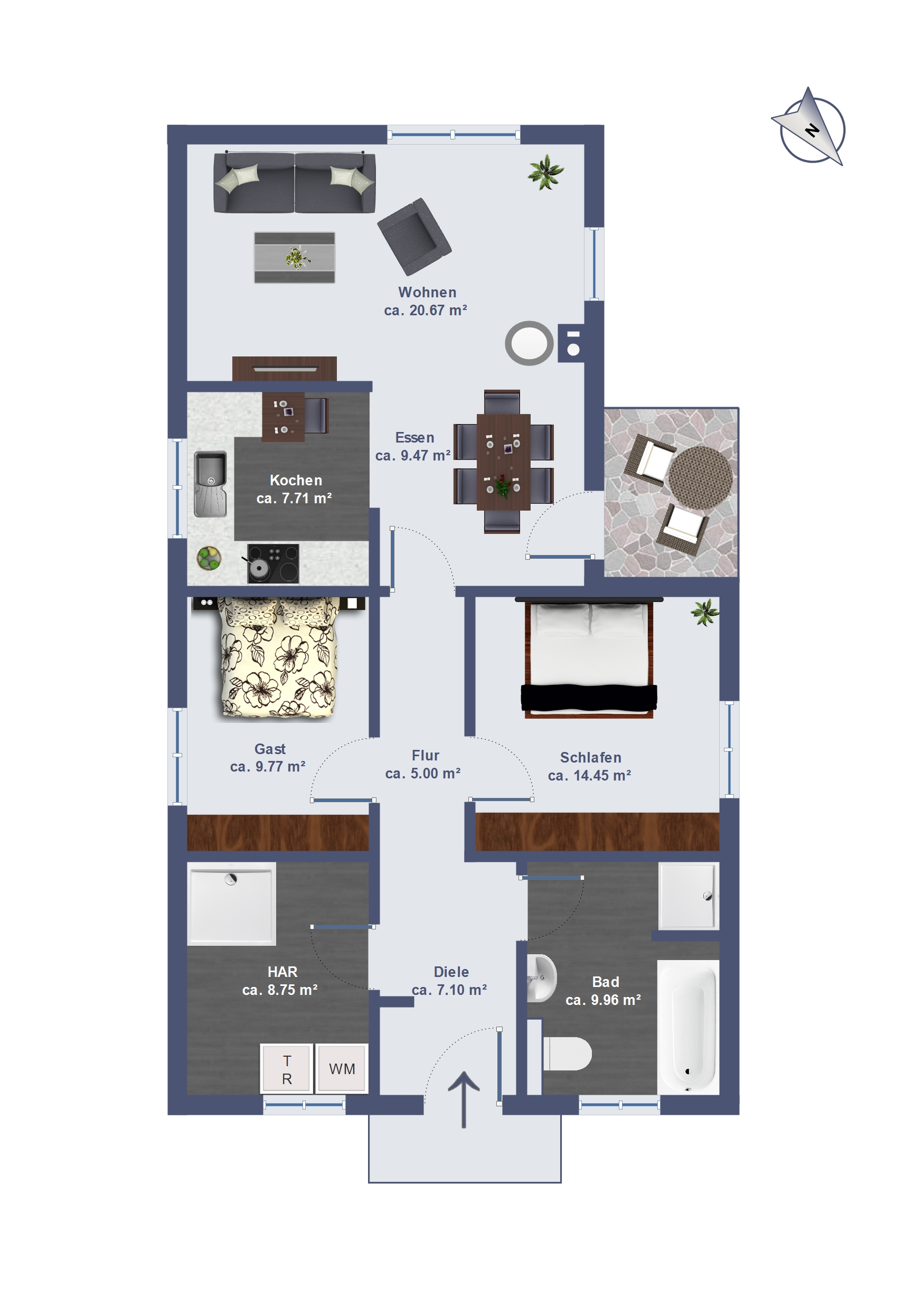 Flächen- und Maßangaben, Grundrissdarstellungen sowie Ausstattungsbeschreibungen dienen der unverbindlichen Orientierung und stellen keine zugesicherten Eigenschaften dar. Abweichungen bleiben vorbehalten.