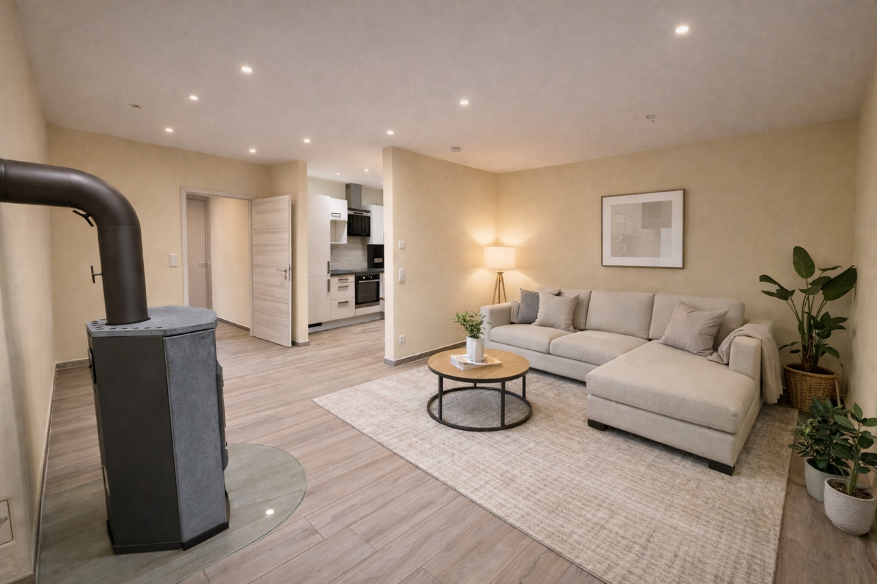 Die Beheizung erfolgt über eine Gas-Brennwerttherme der Marke „Vaillant“ mit Warmwasseraufbereitung. Ergänzend sorgt ein Kaminofen der Marke „Kingfire“ im Wohnbereich für zusätzliche Wohnqualität.