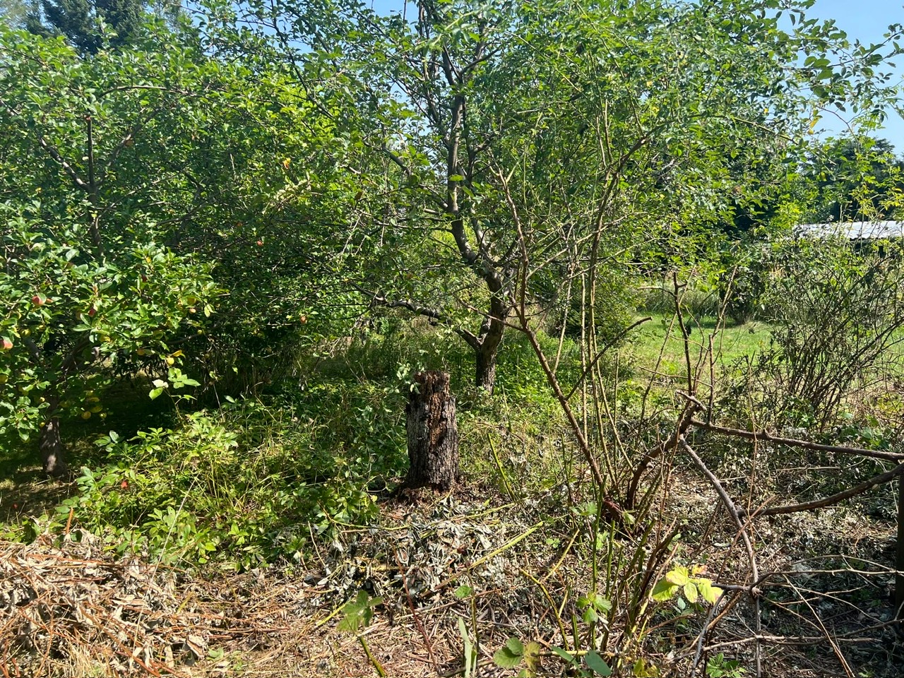 Auf dem Grundstück befinden sich eine Garage und eine Betonplatte von ca. 4 m², die abgerissen werden können. Im hinteren Grundstücksbereich steht ein Schuppen, der bei Bedarf weiter genutzt werden könnte. Das Grundstück ist mit einzelnen Bäumen und Strauchwerk bewachsen.