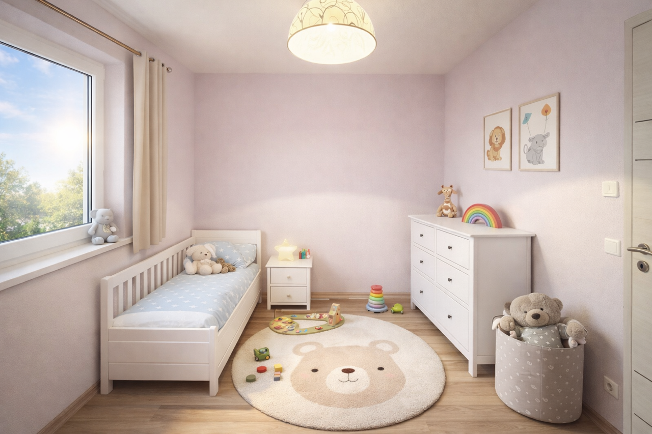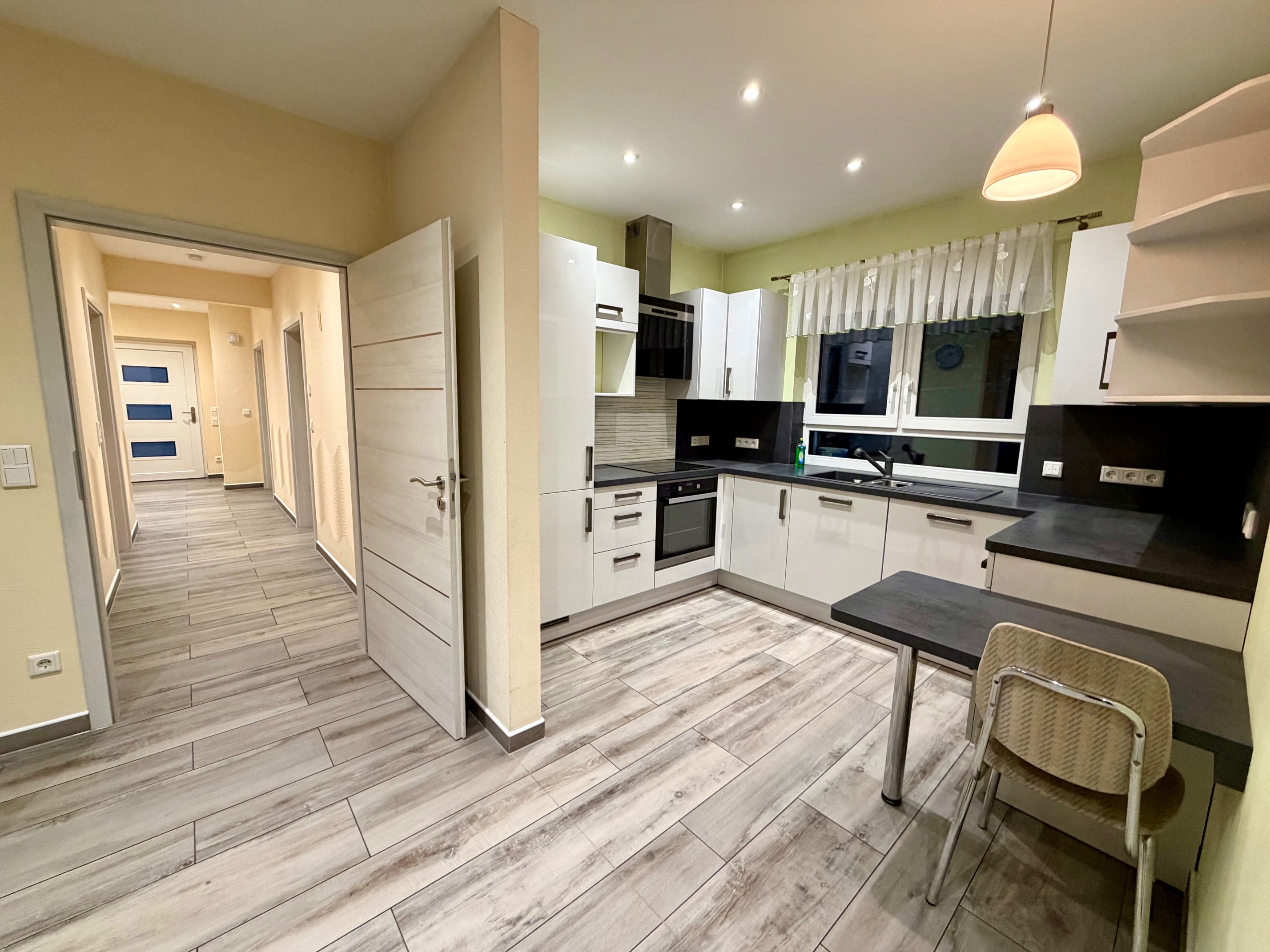Ein Schlafzimmer sowie ein separates Kinder- oder Arbeitszimmer schaffen individuelle Rückzugsorte. Die Küche ist mit einer modernen Einbauküche ausgestattet und fügt sich funktional und harmonisch in das Wohnkonzept ein.