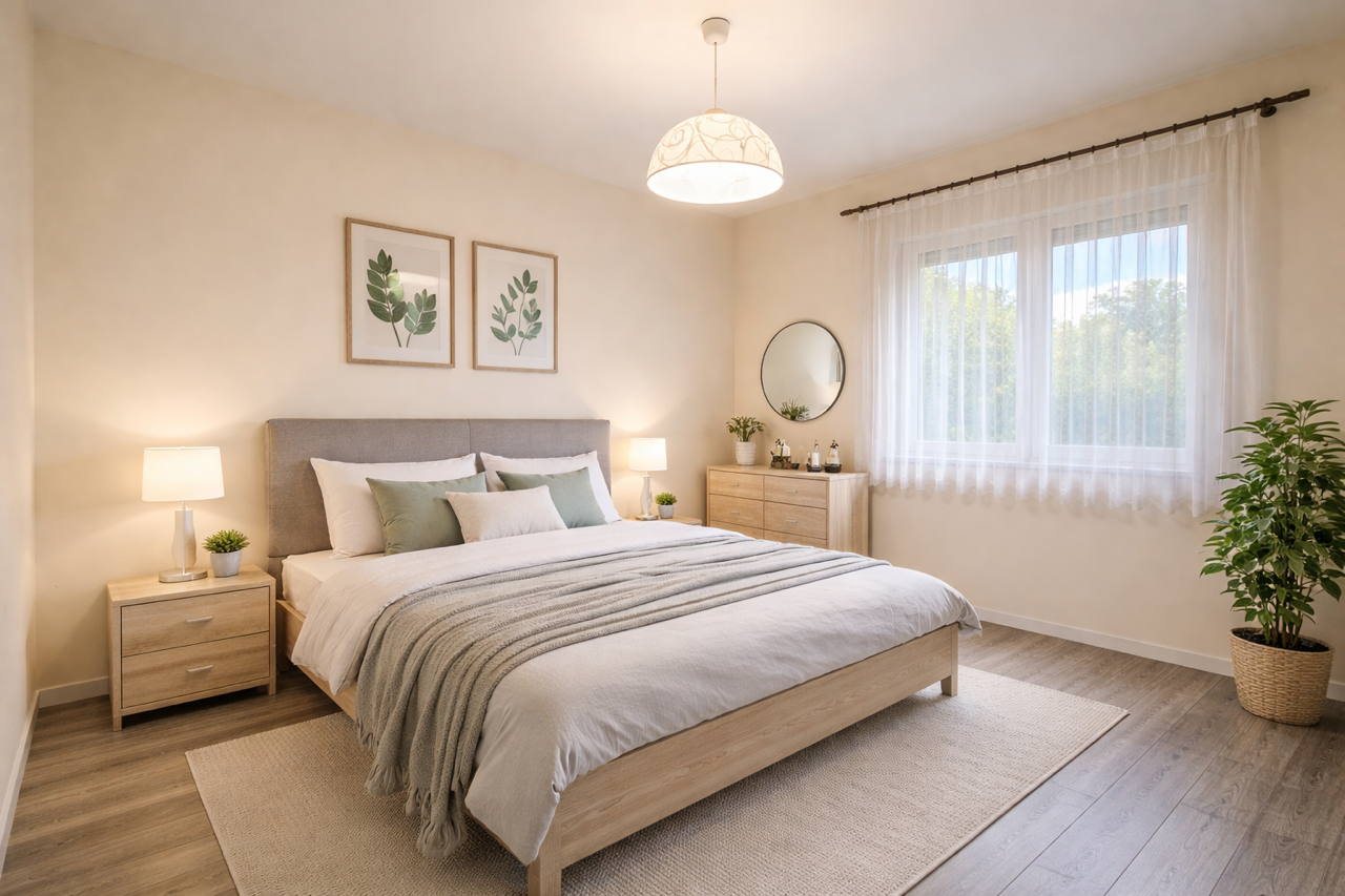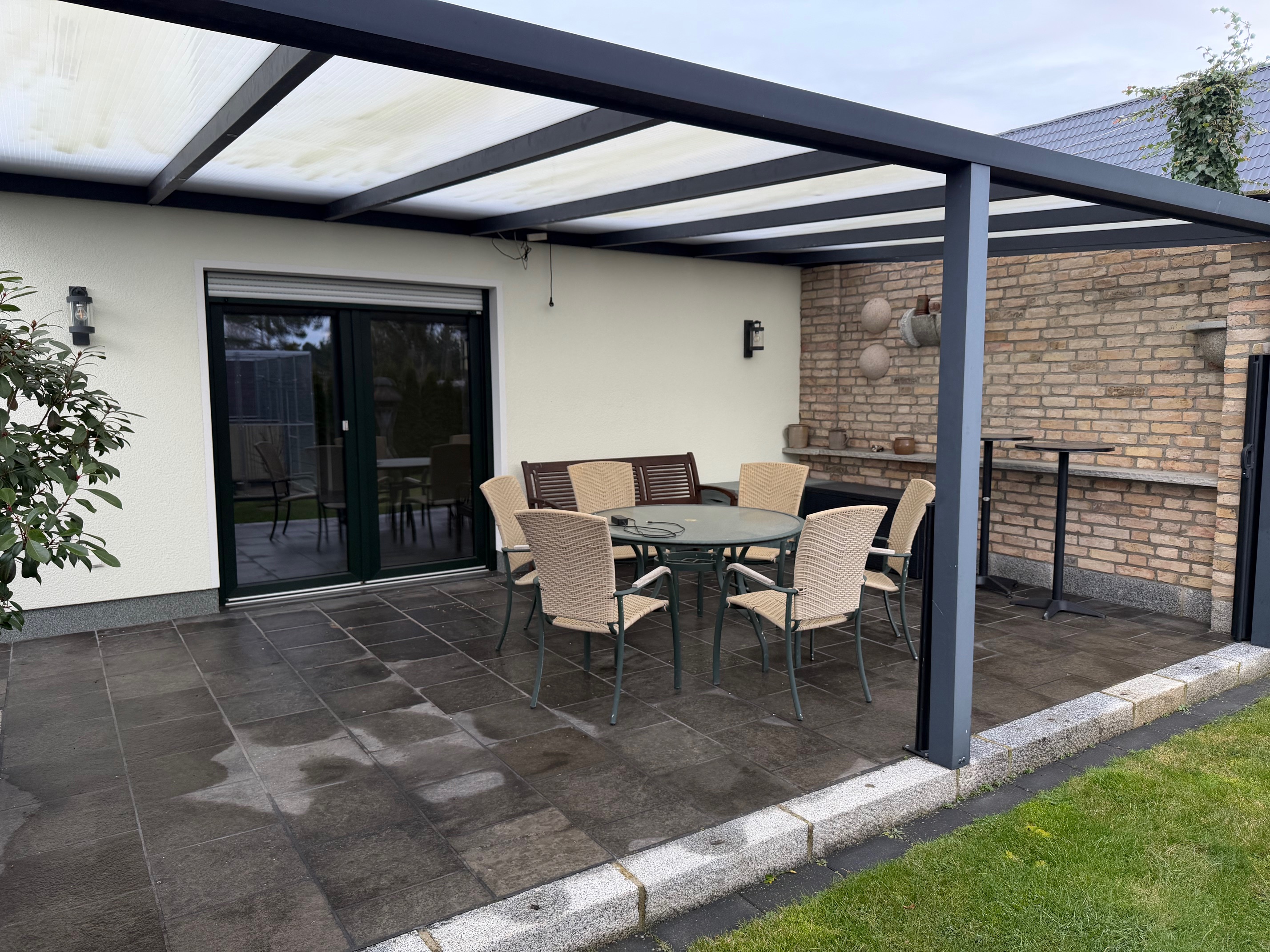 Herzstück des Hauses ist der helle Wohn- und Essbereich, der Offenheit und Wohnqualität vereint. Von hier aus gelangen Sie direkt auf die überdachte Terrasse und weiterführend in den pflegeleicht angelegten Garten – ein fließender Übergang zwischen Innen- und Außenbereich, der den Wohnraum spürbar erweitert und zu gemeinsamen Momenten im Freien einlädt.