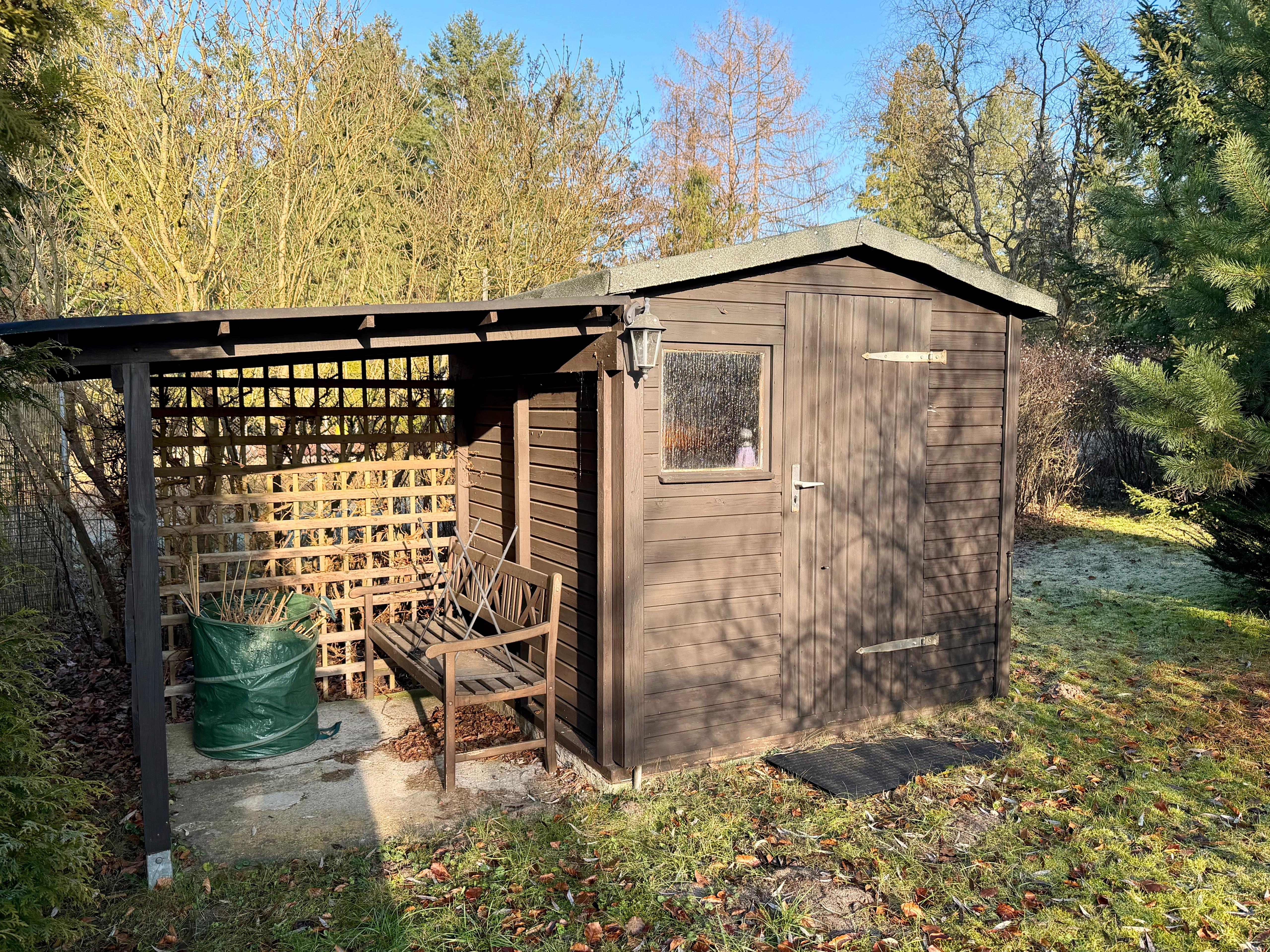 •ein Container als Schuppen für Gartengeräte (ca. 10 m²), Gartengeräte vorhanden